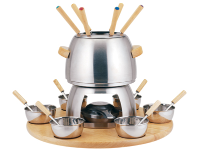 Nabízíme Vám fondue různých velikostí, z nerezu i keramiky, na sýr i čokoládu. K dispozici je jak sada na čokoládové fondue , tak i sada na sýrové fondue. Jedná se tedy o nádobu na podstavci s hořákem, ke které patří několik tenkých vidliček, kterými si společnost opéká či vytahuje připravované jídlo. V dnešní době fondue představuje. Určitě se vám bude hodit tato stylová a praktická sada na čokoládové, sýrové a masové fondue.